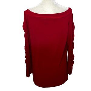 Like new Ciara Sun Woo Red Boatneck Ruched Long Sleeve Top Size Medium