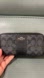 Elegant Coach wallet with iconic logo pattern. Sleek zip closure.
