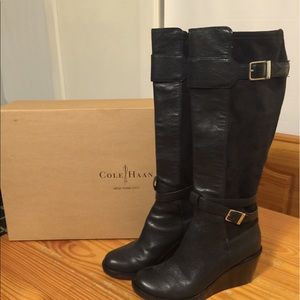 Like new Cole Haan Patricia Wedge boots in black leather,size 8,5,only worn for an hour at the party,got it from Nordstrom's and absolutely gorgeous timeless pair!πππ»π’