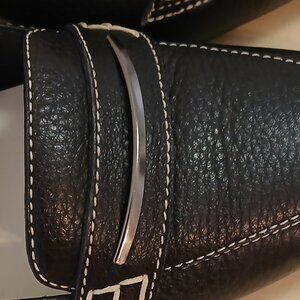 Like new Cole Haan off black pumps - size 5 1/2 with textured skin look and silver trim across top of foot. Heels and soles in excellent condition. No signs of wear at all. Heels are 3 inches tall.
