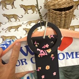 Adorable like new for love and lemons mini floral dress. Worn once and dry cleaned. Has belt and is soo cute. Sweetheart neckline. Rouching at waist and puff sleeves. Black with white dots and orange/pink flowers. Smoke free, pet free home.