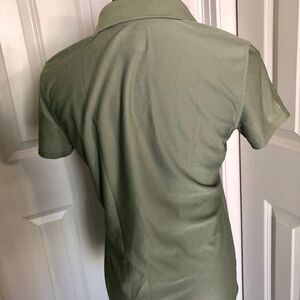 Nice moss green shirt by Izod Golf in size medium. 100% polyester. Closes with push buttons.