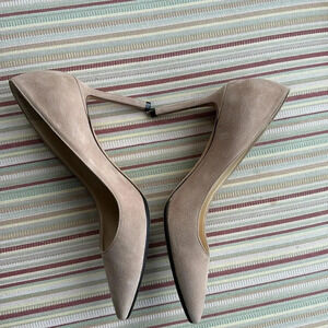 Like new Women’s Jimmy Choo suede stilettos heels with gently pointed toe in a sandy nude color perfect staple neutral for everyone’s wardrobe. Size 37 3 1/4” heel never actually worn outside
