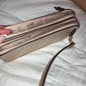 Chic Michael Kors crossbody in rose gold. Sleek design with adjustable strap. Perfect for any outing.