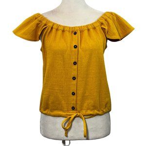 Like new! MADEWELL Yellow Off-the-Shoulder Textured Tie Waist Top Size Small