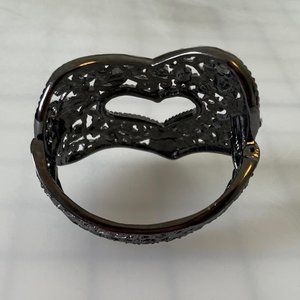Unusual combination of glam, metal and girly. Re-poshing because it's a little too big for me (I have skinny wrists). Spring hinge on side for easy on/off. INTERIOR measurements are approx 2.25" across and 1.75" front to back. Near-perfect condition. Questions? Leave a comment below!