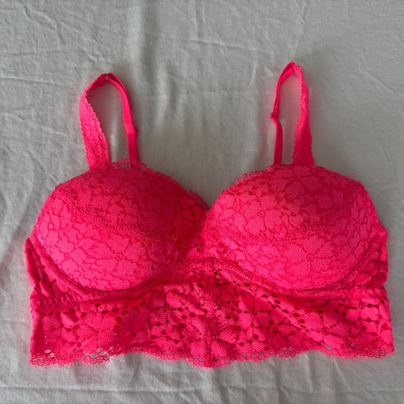 Excellent condition, like new without any sign of wear. Fun and bright coral-ish pink color. Padded, push up, super cute to pair with boy shorts or bike shorts. Size M.