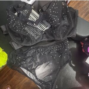 Dazzle in our Lydia black Diamante bra. Midnight black mesh cups scattered with dazzling diamantes to make you sparkle. Pair with our matching Highwaist Thong to be the star of the show.