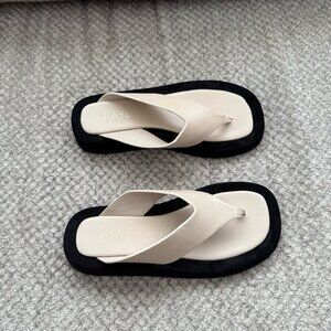 Like new RAYE Chris Sandal in Bone ivory leather platform flip flop suede