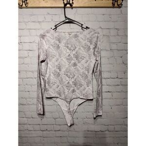 Like new, VS PINK, thong, purple and white snakeskin print, bodysuit size medium. Wasn't recently purchased but hasn't ever been worn. In new condition without sales tags.