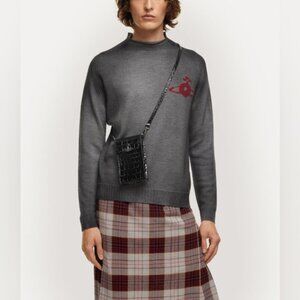 Our Crocodile Phone Bag, crafted in leather, features a croc-embossed surface inspired by our 'Wild Beauty' collection. It’s finished with the 'Thin Line Orb' motif on the magnetic press-stud fastening, reflecting Vivienne's vision of bringing tradition into the future.