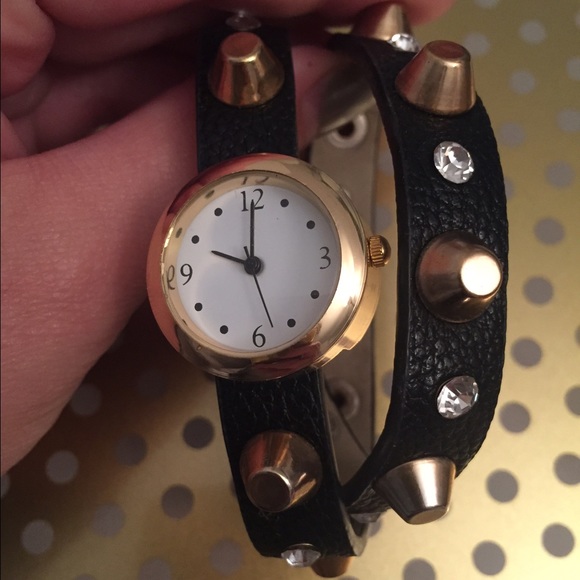 Studded wrap watch. Only worn once great condition. Small face looks great stacked with other bracelets! Adjustable size closures