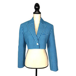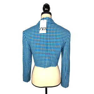 Like new - ZARA Blue Black Checked Cropped Blazer Jacket Size: XS