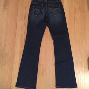 Hemmed but only worn once. I am 5'2" and they were hemmed to fit me