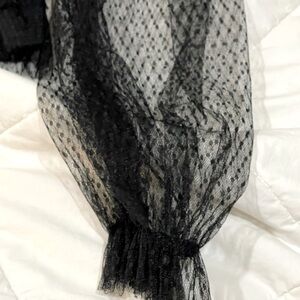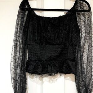 Like new juniper blu cotton/polyester top with sheer sleeves