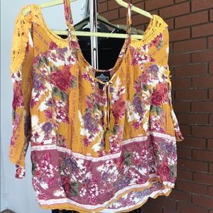 😍gorgeous bohemian embroidered floral cold shoulder top by angie. m fits like a large, loose and very boho beautiful 🌸😁❤🌸