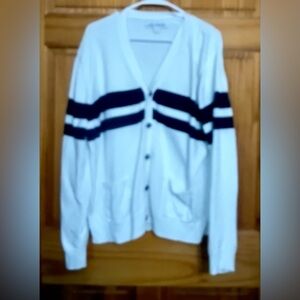 Like new white and navy blue mens XXL cardigan sweater with pockets