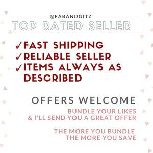 Hi thank you for the like! I am a posh Ambassador and top Rated seller! If you love fashion and finding good deals like me then I think you would enjoy some items in my closet! If you have a few minutes, please take a look! I’m running a buy one get one 50% off on everything sale! Add your likes to a bundle and I’ll send you a discounted offer. Also, I offer free shipping on all orders $60+!! Please lmk if you have any questions or need any help! Happy Poshing!!