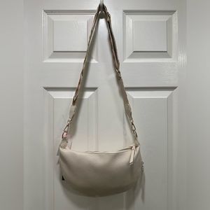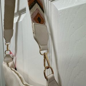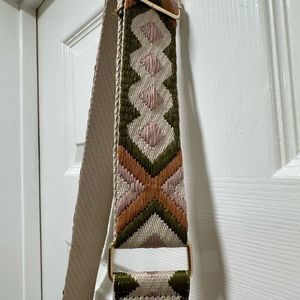 -Adjustable Embroidered strap in cream, pink, brown & green