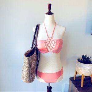 Like-New! Abercrombie & Fitch Fishnet Style Top - Salmon Two Piece Bikini Set