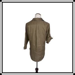 Dark Khaki Brown/Green, convertible sleeve linen top by Ellen Tracy, Size Medium.