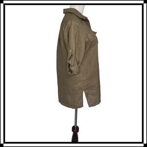 Like New! Ellen Tracy, Dark Khaki Linen Top, Size Medium