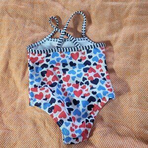 LikeNew Healthtex Red White And Blue Hearts One Piece Swimsuit Girls 0-3 Months