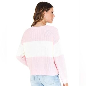Women, Woman, Women's, Size M, Size Medium, White, Pink, Colorblock, Heather Cherry Blossom, Cozy, Knit, Knitwear, Sweater, Pullover, Crewneck, Long Sleeve, Fall, Autumn, Autumnal, Comfy, Comfortable, Soft, Like New, Like-New, Sanctuary, Luxe, High Quality, New, Acrylic, 100% Acrylic, Girly, Girlcore, Femme, Feminine, Pretty, Beautiful, Versatile, Boxy, RN 95377
