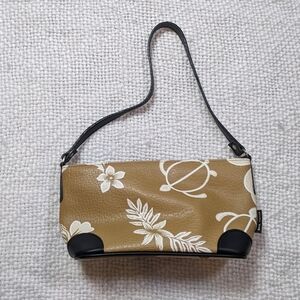 Hawaiian, Hawaii, Tropical, Vacation, Mini Bag, Shoulder Bag, Cute, Pretty, Feminine, Girly, Floral, Turtle, Travel, Mini Shoulder Bag, 808 Honua, Neutral, Tan, Cream, Floral Print, Turtle Print, Adorable, Beautiful, Unique, Leather, Lined, High Quality, Luxe, Luxurious, Dainty, Like New, Like-New, New, Accessories, Accessory, Women, Woman, Women's, Y2K, Retro Style, 90s Style