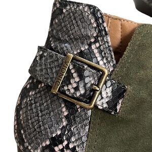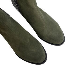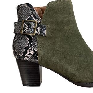 Worn once; Gorgeous shade of green sueded leather and faux snakeskin uppers; side zip; 2.5” heel; podiatrist designed insoles that provide exceptional foot and arch support; retailed @ $170.00; smoke/pet free home. **