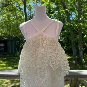 Fully lined Double shoulder straps Flounce bodice overlay Allover eyelet fabric Scalloped hem Hidden side zipper No flaws