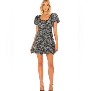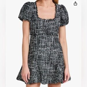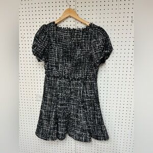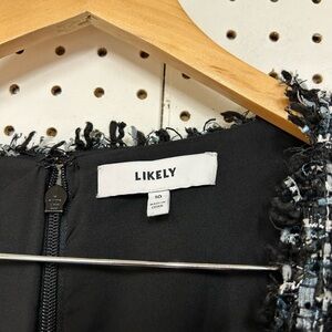 Cut in metallic threaded tweed with placed sequin on a multi black/blue ground, and fully lined