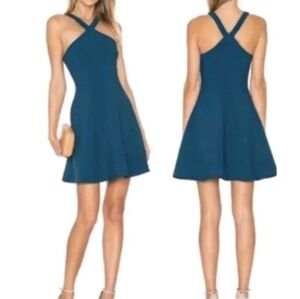 Likely Ashland Fit and Flare Halter Dress 6 Deep Teal Cross Neck Design