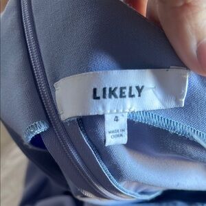 This Likely sundress in a vibrant blue hue features a sleeveless halter neckline, perfect for wedding guest attire. The fitted bodice with vertical seaming enhances the silhouette, while the fluted hem adds a playful touch. Its structured fabric ensures the dress maintains its elegant shape.
