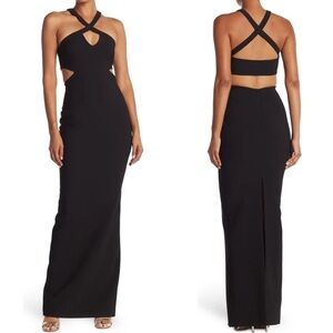 Classy yet fun, this unique laser cut and cross-halter top gown will make jaws drop.