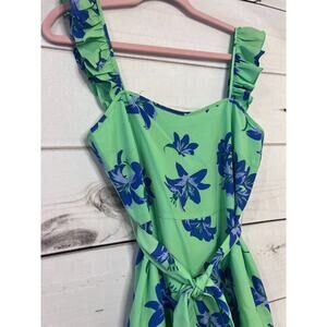 Likely Charlotte Mini Dress Size 6 Blue Green Floral Ruffle Tie Waist Flowy