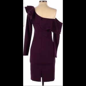 67% Polyester, 27% Rayon, 6% Spandex 3/4 Sleeve Party Solid Ruffle accents, Frills & Ruffle accents Purple Knee length