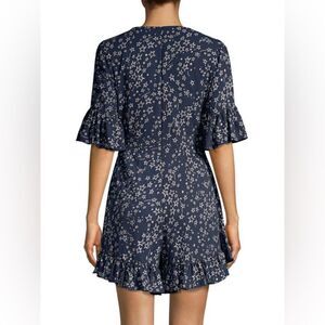 Details: graphic star romper designed in the form of a mini dress, Roundneck, Elbow-length bell sleeves, Side self-tie waist, Concealed back zip, Tiered ruffled hem