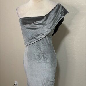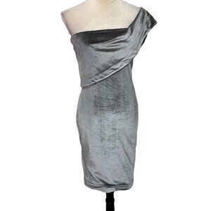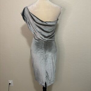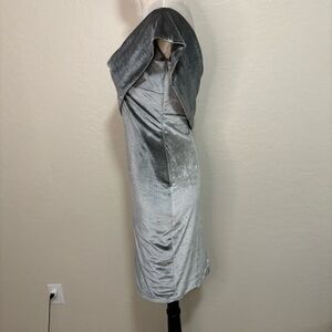 Likely Driggs One Shoulder Asymmetrical Gray Velvet Midi Cocktail Dress 4
