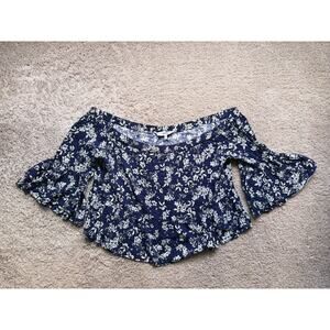 Likely Floral Off Shoulder Blouse Medium Flare Sleeve Navy Blue Boho Whimsy
