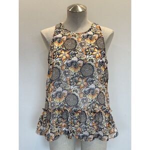 Likely Floral Ruffle Hem Top in Orange Size 4