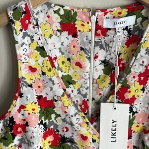 The wrap style mini dress features a beautiful floral motif, a V neck and a flirty silhouette.