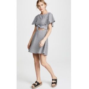 Size 2 Likely Hardeen Gingham Tie-detail Cutout Dress In Black/white