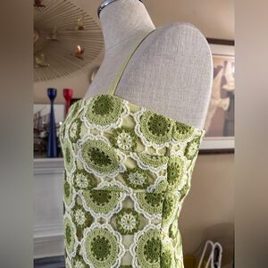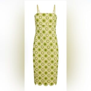 The Jenila Dress is the perfect fun midi dress for spring with its unique pattern and cami straps.