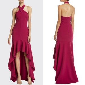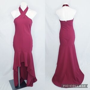Likely Jenny Formal High Low Halter Gown Dress Berry Red 6