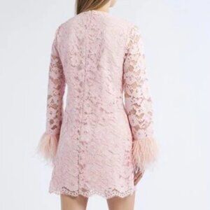 Likely Lorie Feather Trim Long Sleeve Lace Mini Dress in Rose Shadow NWT