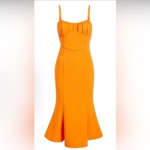 Likely Lyla Dress Midi Mermaid Fit Flare Orange Wedding Guest Gala Event Formal