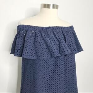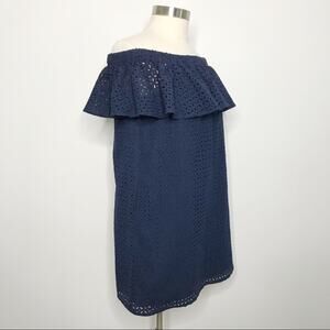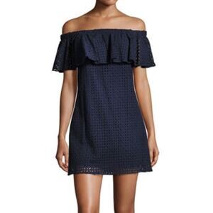 Likely Medium M Navy Blue Cicero Off The Shoulder Eyelet Mini Dress Summer