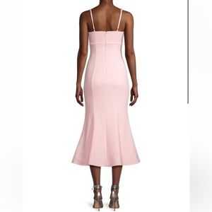 Trimmed with lustrous faux pearls, LIKELY's Meritt midi-dress features a trumpet silhouette, V-neck, and adjustable straps.