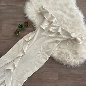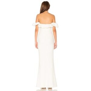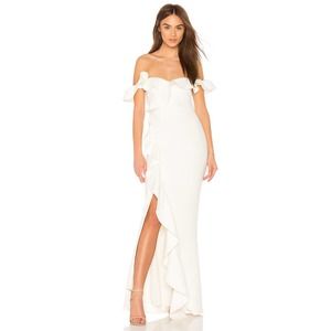 Likely Miller White Ruffle Off Shoulder Slit Leg Maxi Dress Gown